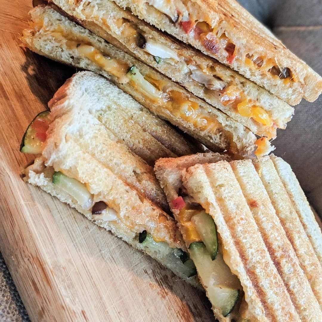 Grilled broccoli, asparagus, mushrooms, zucchini, squash, red onions, bell peppers, chipotle spread, feta cheese, avocado, dorado roll pressed panini style. Season with salt and pepper. To get this complete recipe with instructions and measurements, check out my website: Sprinkle each sandwich with salt and pepper and place second slice of bread on top (butter. Instructions heat your panini press or grill pan to high.